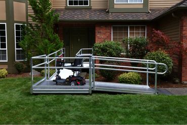 The PATHWAY® 3G Modular Access System consists of ramps, stairs, and platforms, all of which may be combined and configured in a variety of ways to provide a customized access solution for your home. Its unique features, including universal components and interchangeable surface and handrail options, make it an excellent choice when your residential access requirements extend beyond the scope of a portable ramp. If your needs change, the PATHWAY 3G can transition with you. ThisAmerican-made modular system is made of durable aluminum and comes complete with our lifetime warranty. Call customer service for additional information, or clickthrough the tabs below.